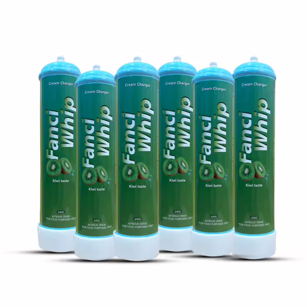 Fanci Whip Kiwi Flavor Cream Charger 640g N20 brings a tropical kiwi twist to your whipped cream. 🥝✨ Available in 1 to 6 tank options for versatile use. 🚚💨 Free shipping on all orders!